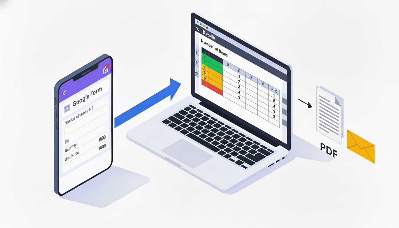 Googleフォームの品目数に合わせて、見積書の明細を可変行で自動生成する方法を解説。for/map/filterの使い方や裏方シート設計、PDF自動化まで初心者向けに丁寧に説明します。